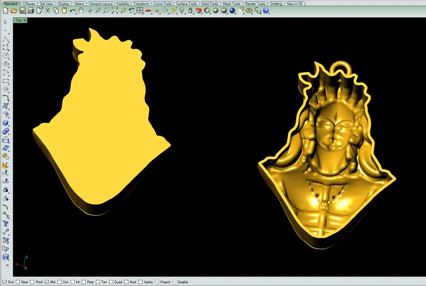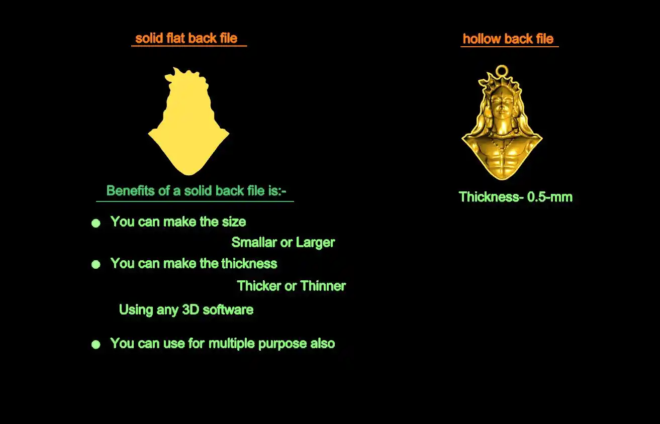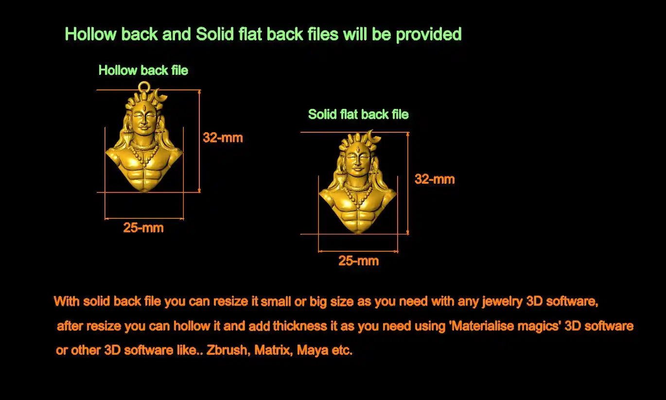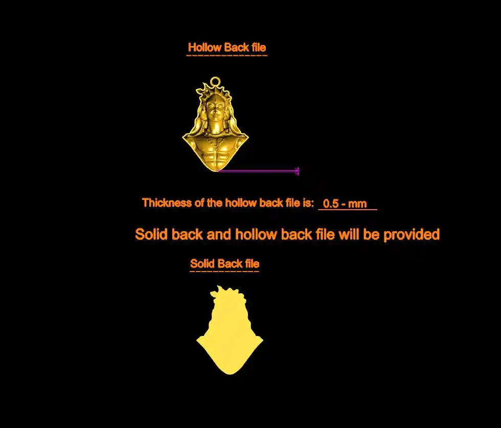 This ' Adiyogi pendant CAD file-1 ' with a hollow back and solid back file is available.