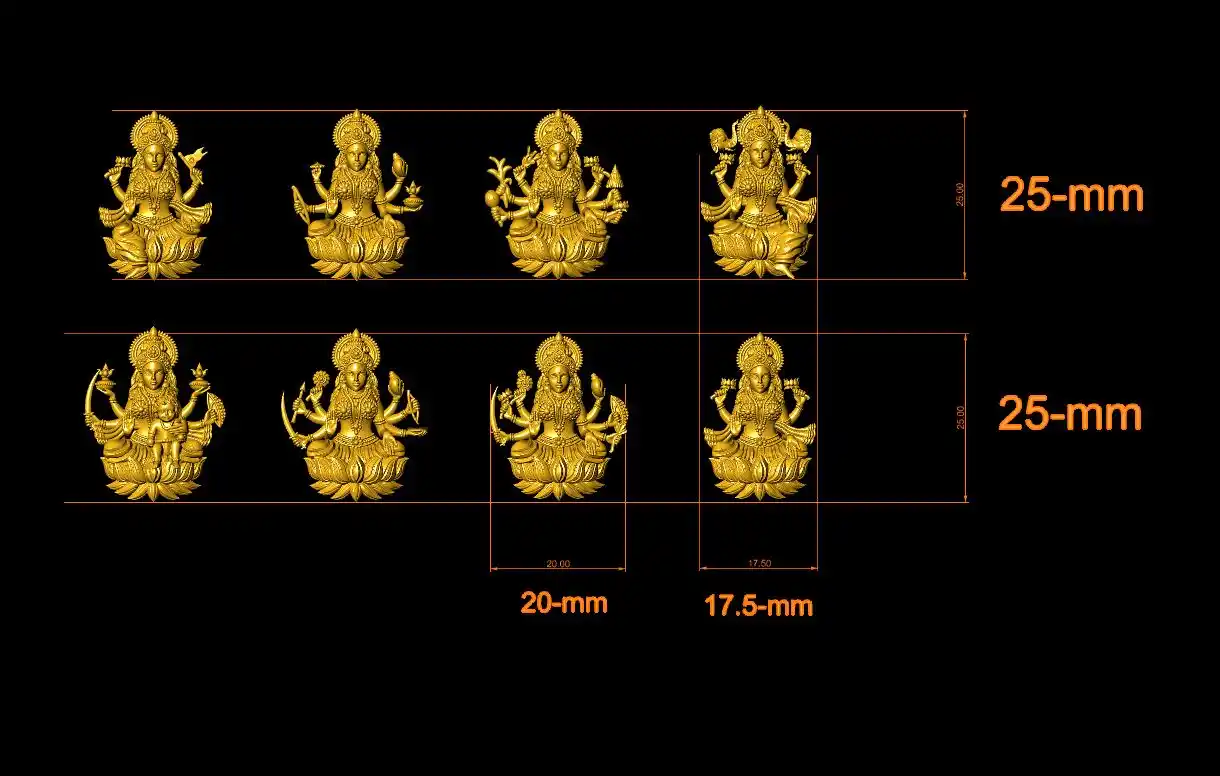This is a jewelry CAD file, CAM file, 3Dprint file, STL file. For jewelry CAD, CAM, 3Dprint and metal casting purpose. You can also use this 3D file for other 3Dprinting purpose. Model name is :- " Astha Lakshmi CAD file-4 "