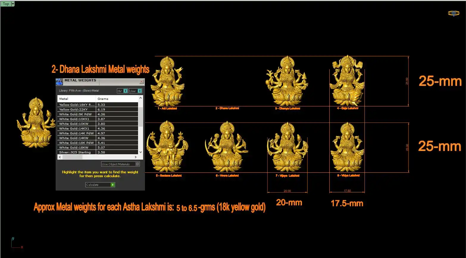 This ' Astha Lakshmi CAD file-4 ' files with hollow back thickness 0.5-mm is available.