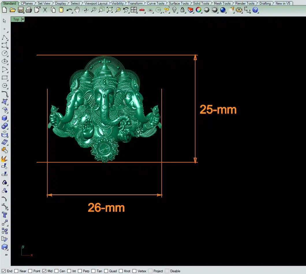 This is a jewelry CAM file, CAD file, stl file, 3D-printing file. For jewelry CAM and metal casting. Model name is :- ” Ganesh Face Pendant file-3 “. This file is for jewelry manufacturing company or other 3D printing ornaments manufacturing company. We can use this model as a Jewelry Pendant, Necklace center piece, Ring center piece, Earrings or other purpose. This Ganesh Face Pendant file-3 is ready for jewelry CAM and metal casting and any type of 3D-printing purpose. You can find all details of the product in product image. We give you (stl, 3dmstl, magics fix-stl and obj) file format in zip file.