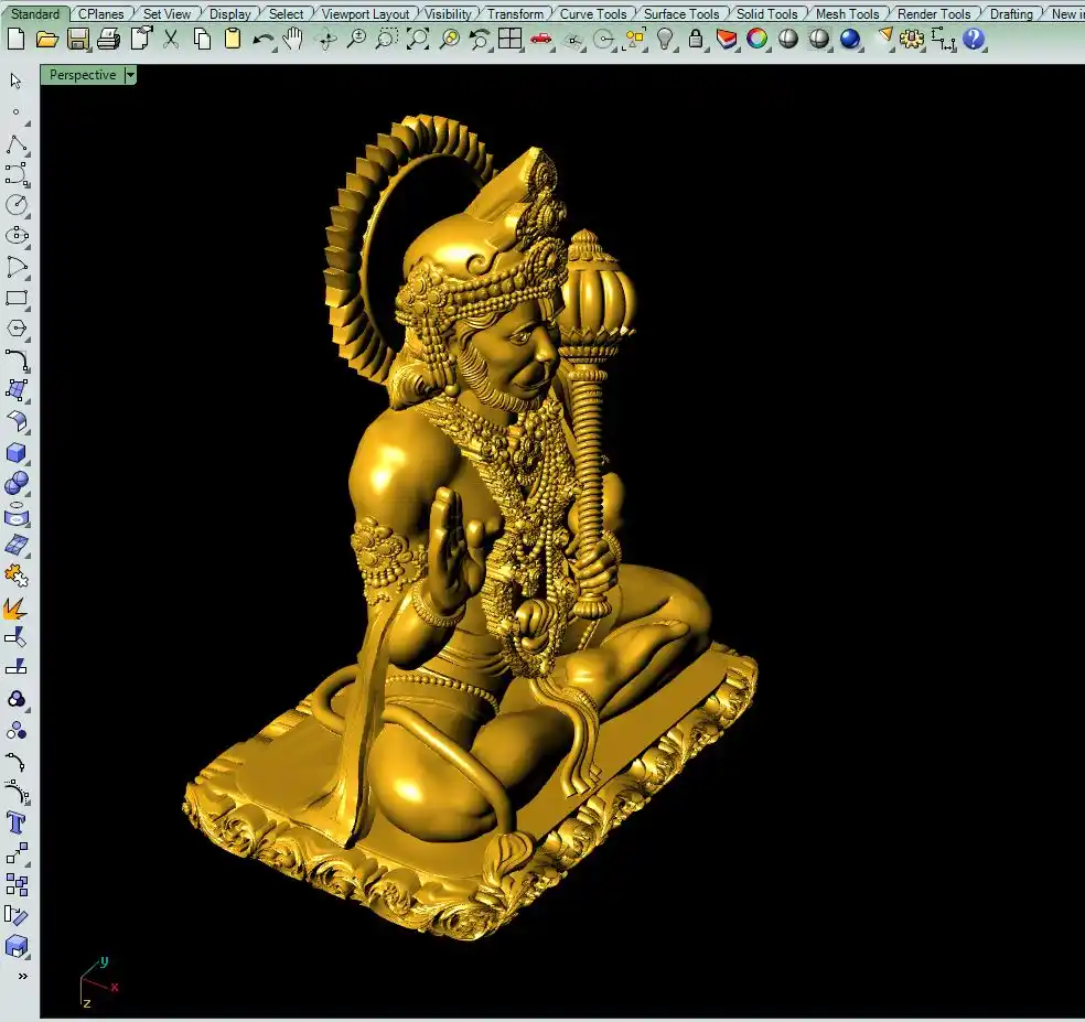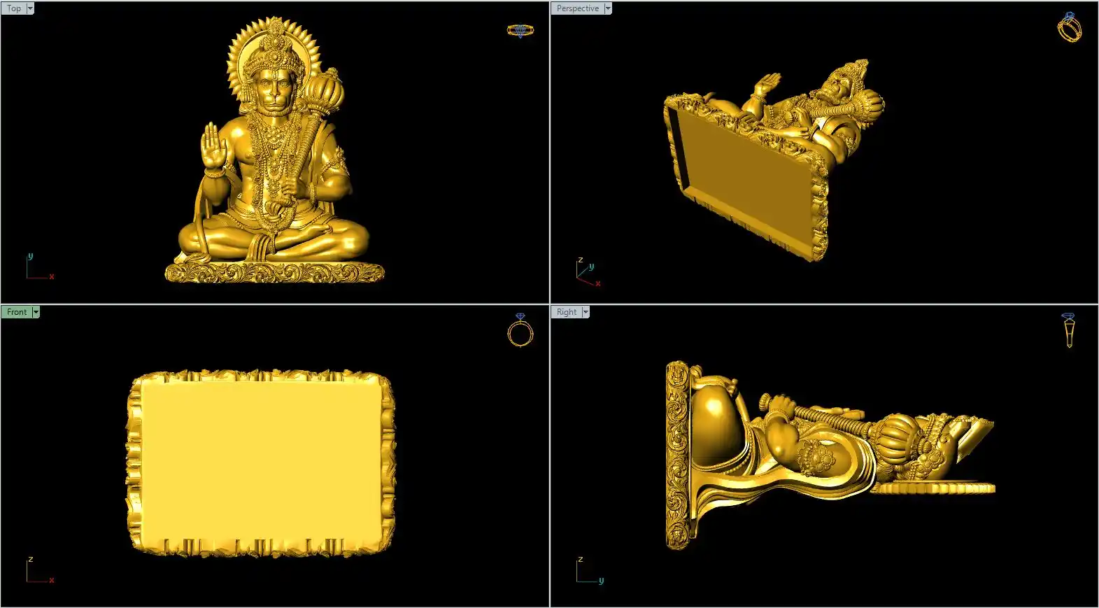 This is a jewelry CAD file, 3Dprint file, CAM file, stl file. For jewelry CAD, CAM, 3Dprint and metal casting purpose. You can also use this 3D file for other 3Dprinting purpose. Model name is :- "Hanumanji 3d cad file-2".