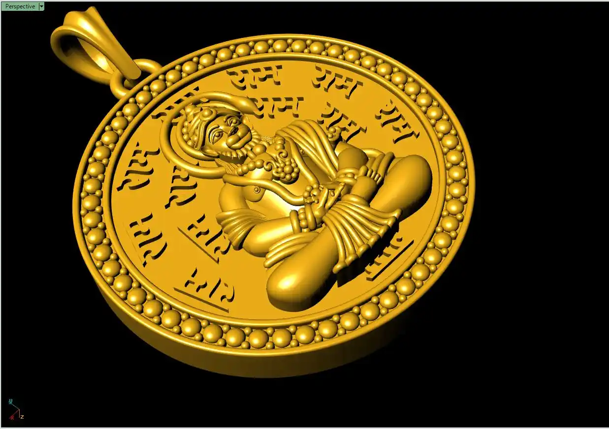 This is a jewelry CAD file, CAM file, 3Dprint file, STL file. For jewelry CAD, CAM, 3Dprint and metal casting purpose. You can also use this 3D file for other 3Dprinting purpose. Model name is :- " Hanumanji Pendant 3Dprint file-6 "
