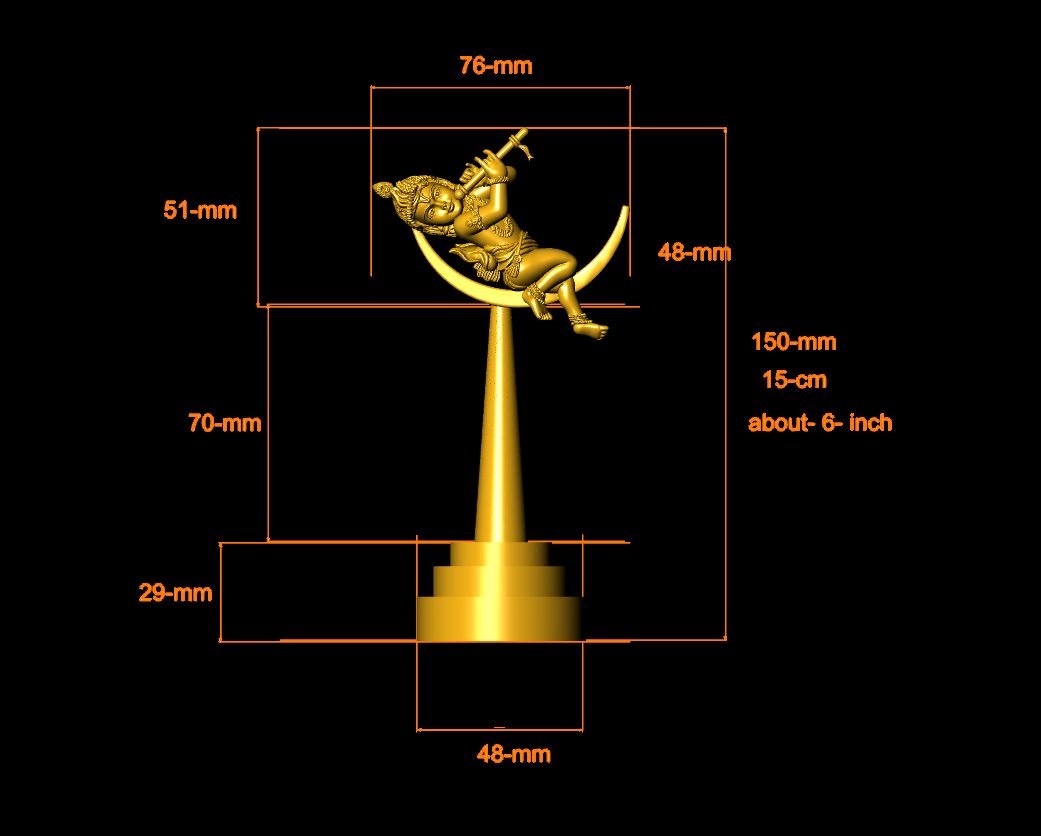 This is a jewelry CAM file, CAD file, stl file, 3D-printing file. For jewelry CAD, CAM and metal casting purpose. Model name is :- ”Krishna Statue Round File“. This file is for jewelry manufacturing company or other 3D printing ornaments manufacturing company. You can use this model as a Worship purpose, desk showpiece for office purpose, home showpiece statue, or other purpose. This Krishna Statue Round File is ready for jewelry CAD, CAM and metal casting and any type of 3D-printing purpose.