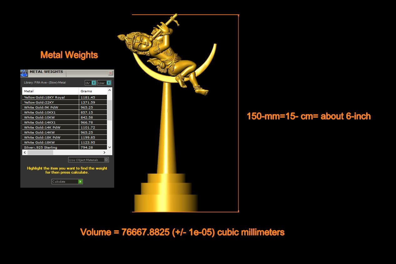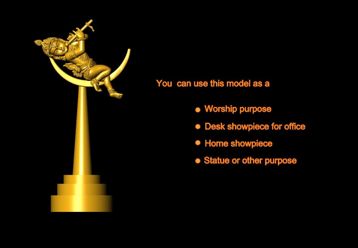 This is a jewelry CAD file, CAM file, 3Dprint file, stl file. For jewelry CAD, CAM, 3Dprint and metal casting purpose. You can also use this 3D file for other 3Dprinting purpose. Model name is :- "Krishna Statue Round File"