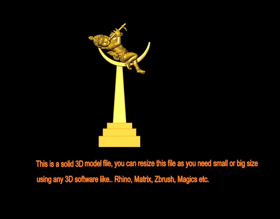 We give you this 'Krishna Statue Square File' file with a solid flat back. With solid back file you can resize it small or big using any jewelry 3D software, like.. (Rhino, Matrix, Magics, Zbrush etc.)