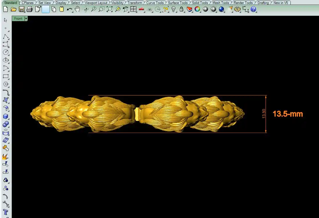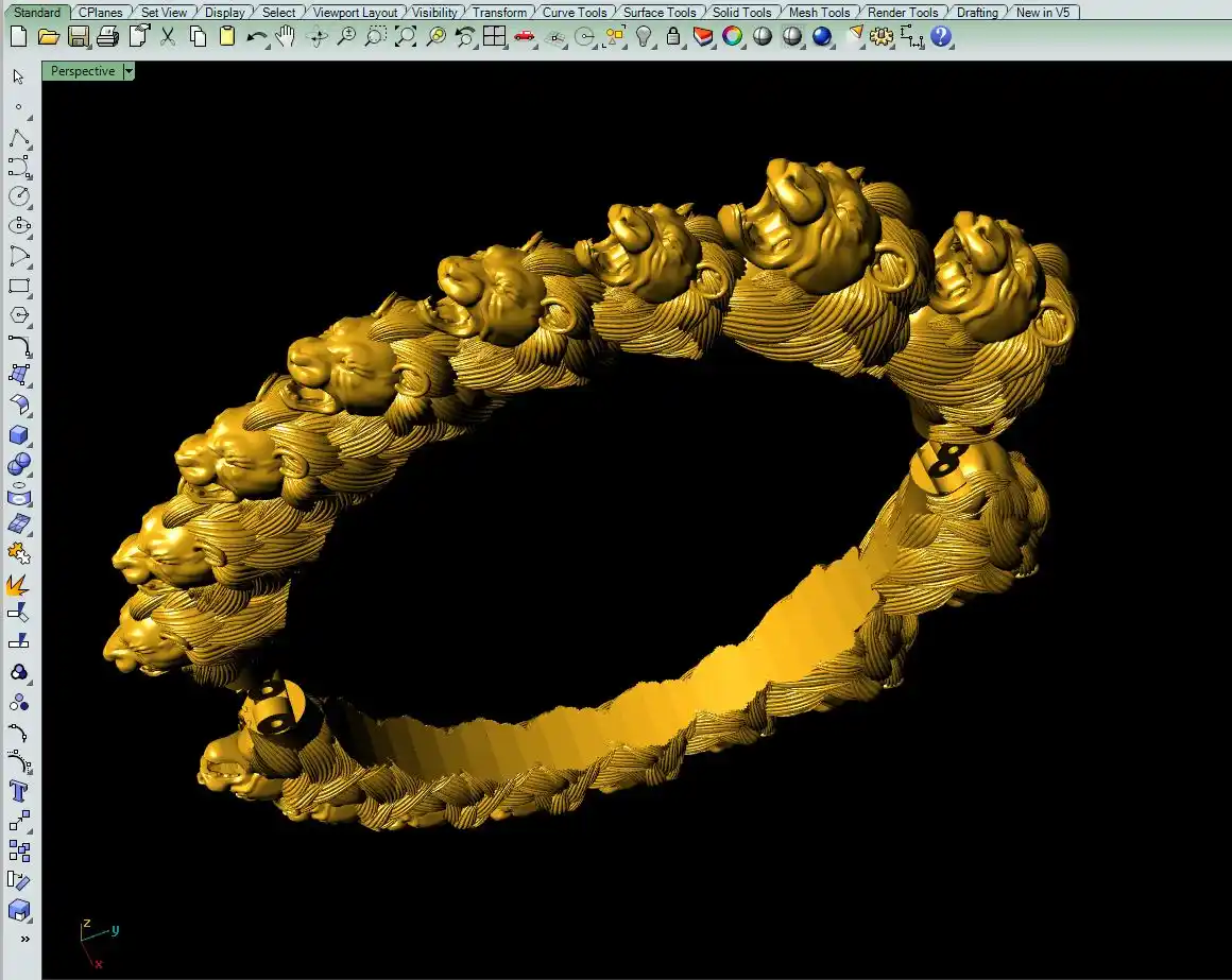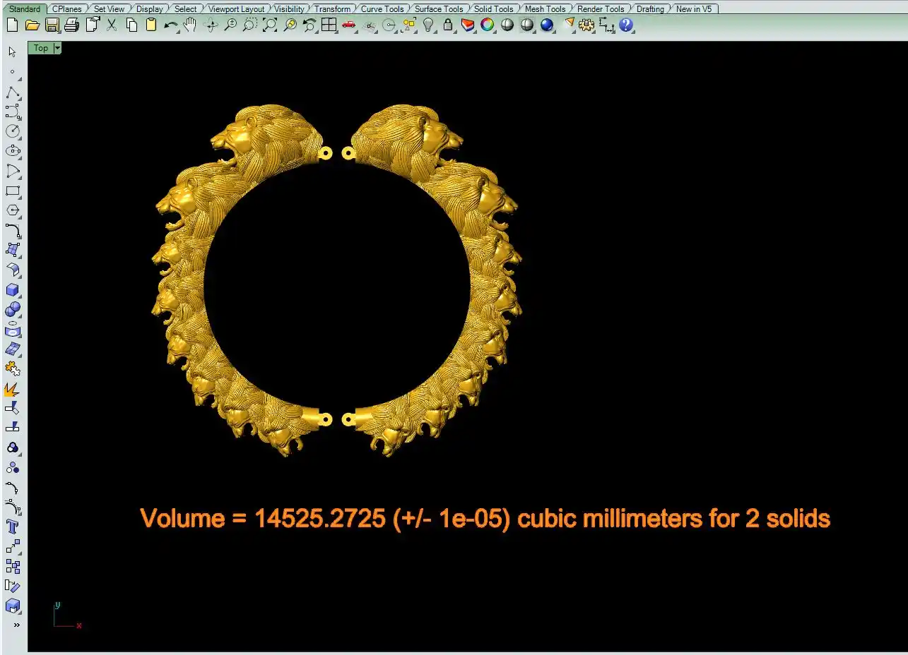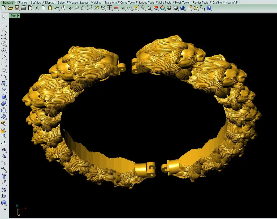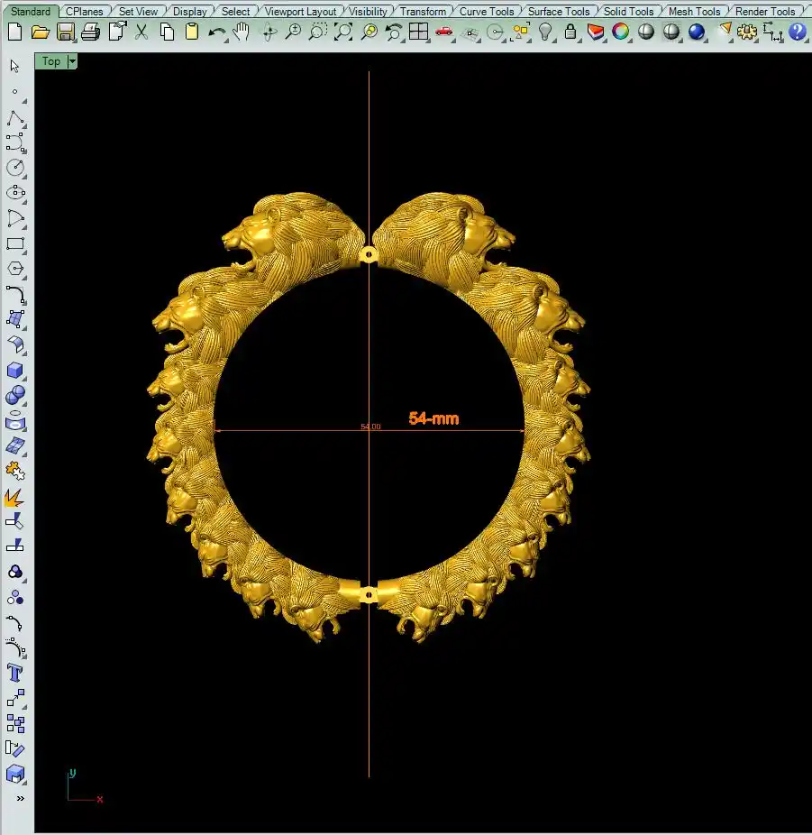 This is a jewelry CAM file, CAD file, stl file, 3D-printing file. For jewelry CAM and metal casting and 3D-printing purpose. Model name is :- ”Lion face bangle file-5“.