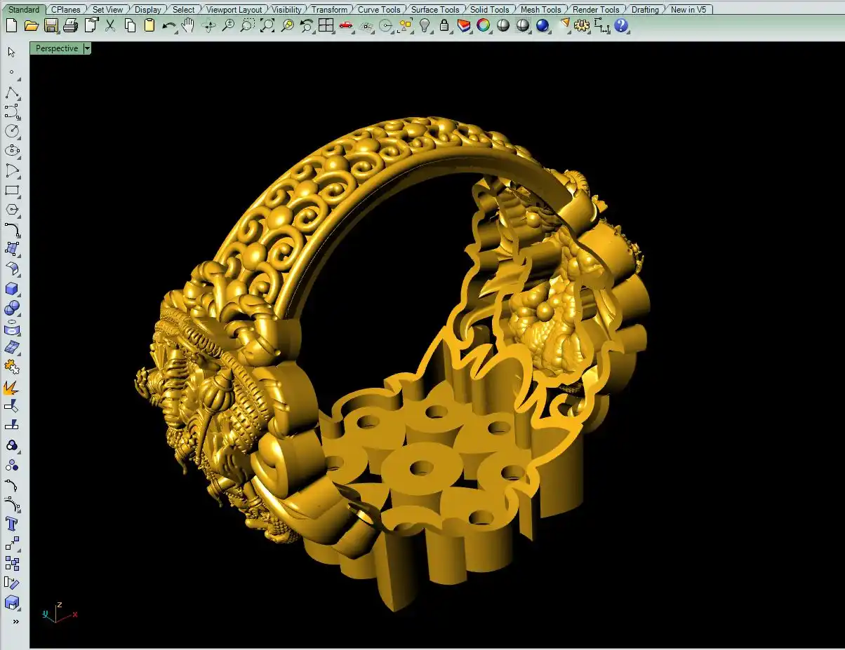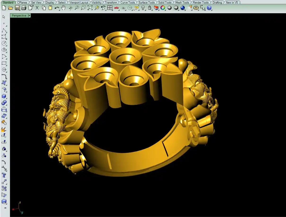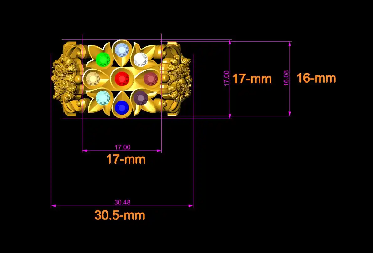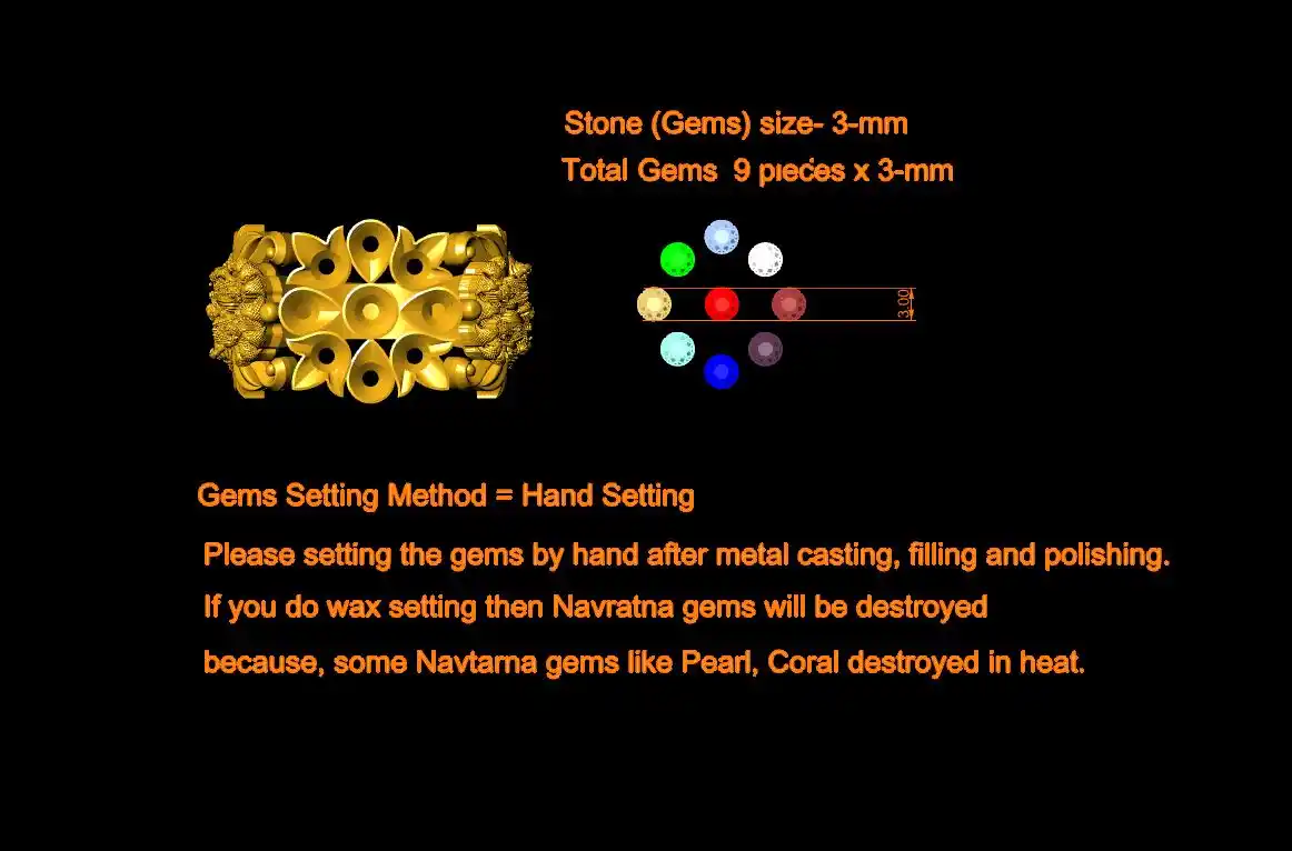 This is a jewelry CAD file, CAM file, 3Dprint file, STL file. For jewelry CAD, CAM, 3Dprint and metal casting purpose. You can also use this 3Dprint file for other 3Dprinting purpose. Model name of this file is :-  " Navratna murti ring file-3 "