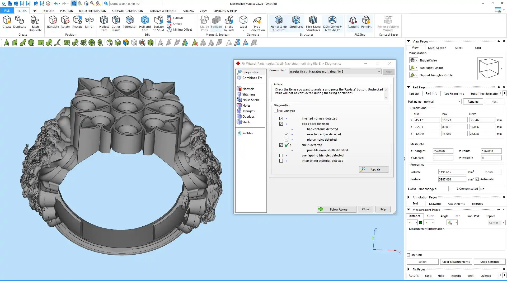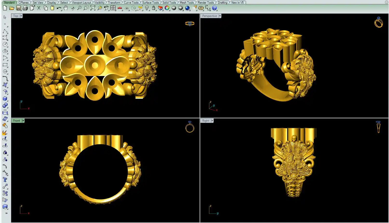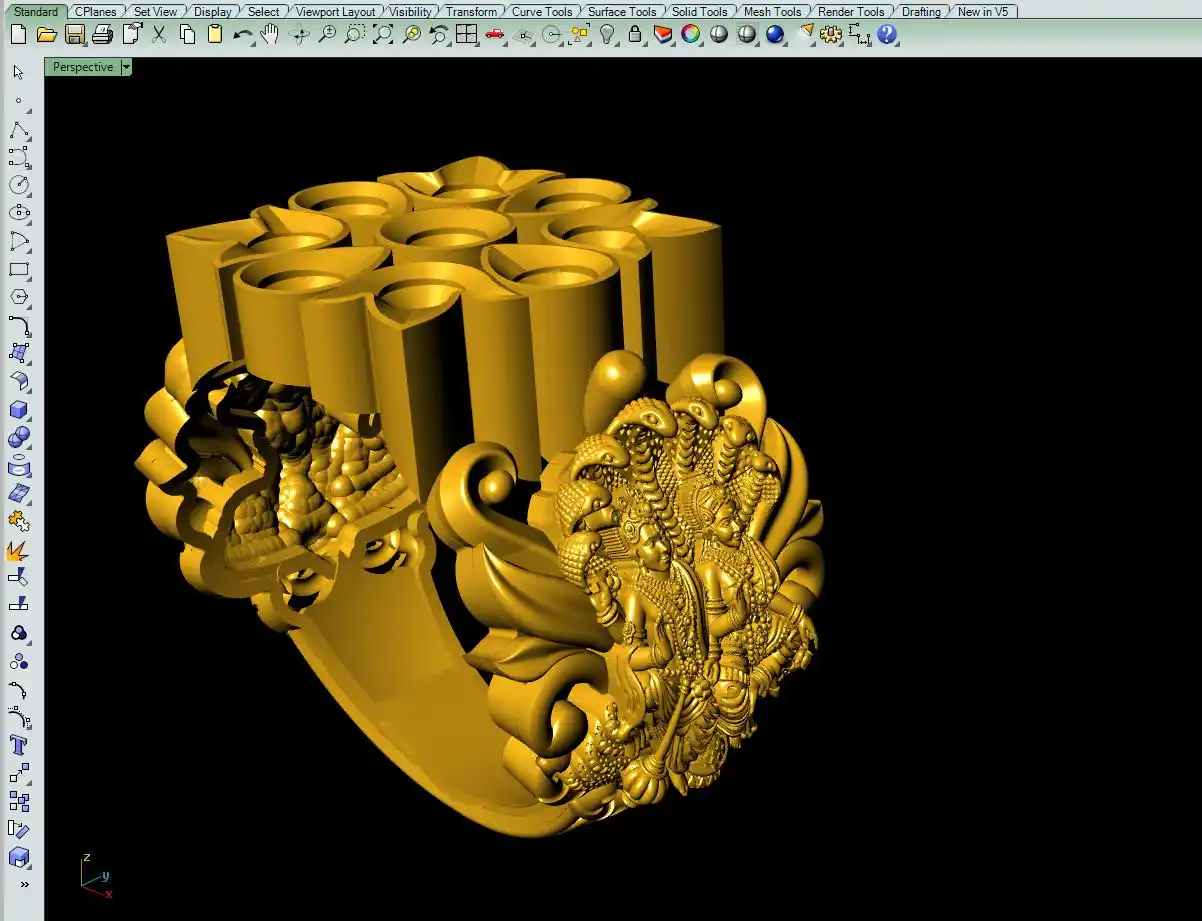 This ' Navratna murti ring file-3 ' with a 'magics fix STL' file format is available and this file format is good for jewelry CAD, CAM, Resin printing, 3Dprinting, and direct metal casting purposes.