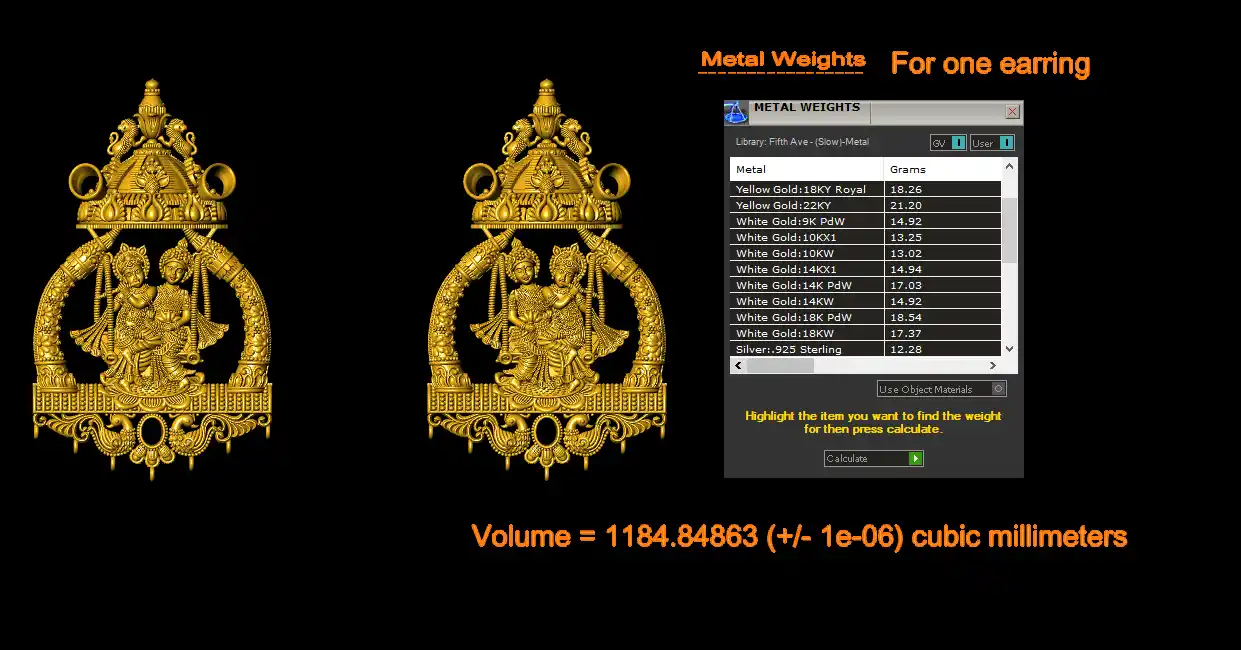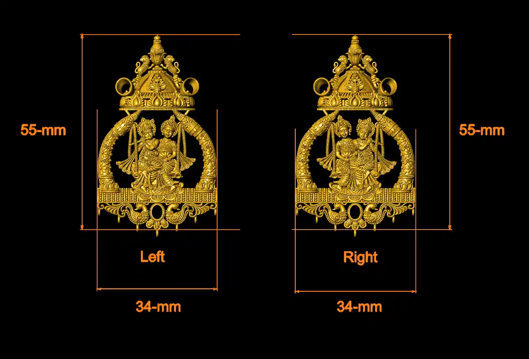 This is a jewelry CAM file, CAD file, stl file, 3D-printing file. For jewelry CAD, CAM and metal casting and 3D-printing purpose. Model name is :- ”Radhakrishna Earring stl file“.