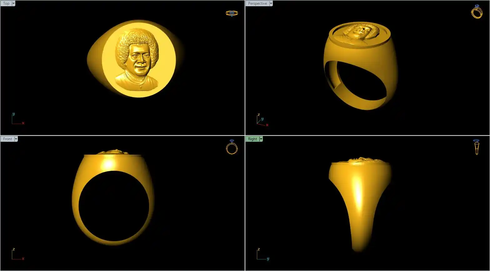 This is a jewelry CAD file, CAM file, 3Dprint file, STL file. For jewelry CAD, CAM, 3Dprint and metal casting purpose. You can also use this 3D file for other 3Dprinting purpose. Model name is :- "Sathya Saibaba ring file"