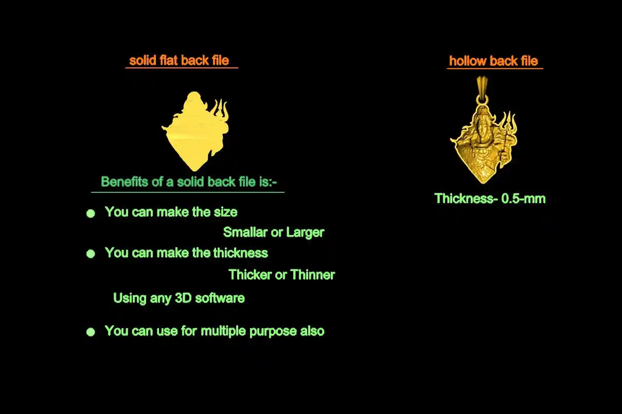 Solid flat back file benefits: You can use this for multiple purpose and you can resize it small or big and hollow it and add thickness according to your requirement, using any jewelry 3D software, like.. Rhino, Matrix, Magics, Zbrush etc.
