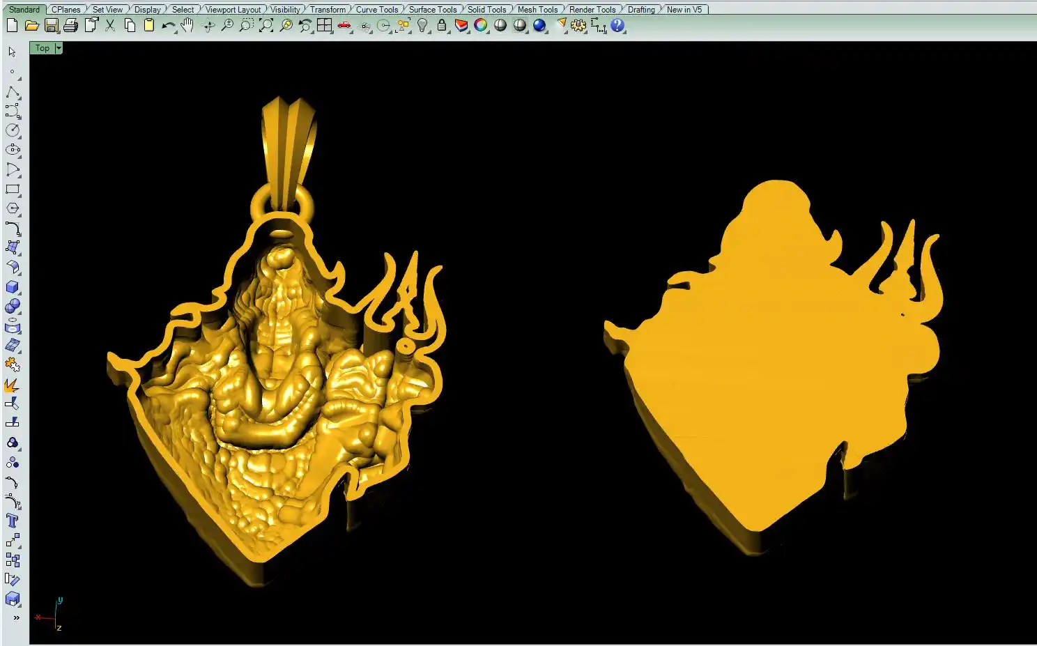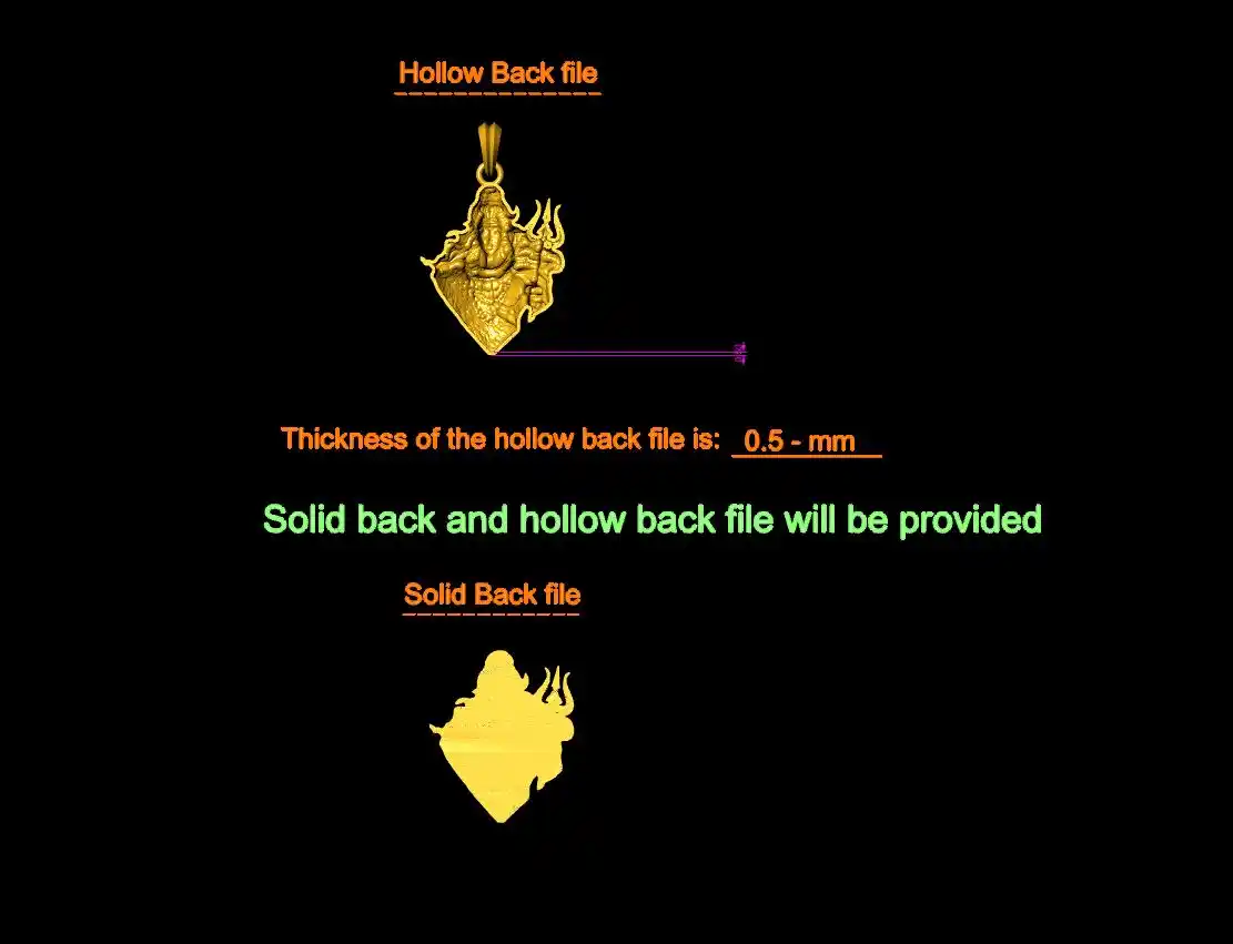 This ' Shiva pendant CAD file-1 ' with a hollow back and solid back file is available.