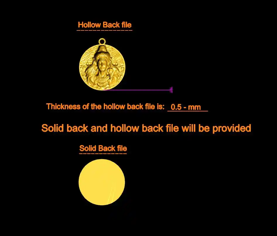 This ' Shiva pendant CAD file-2 ' with a hollow back and solid back file is available.