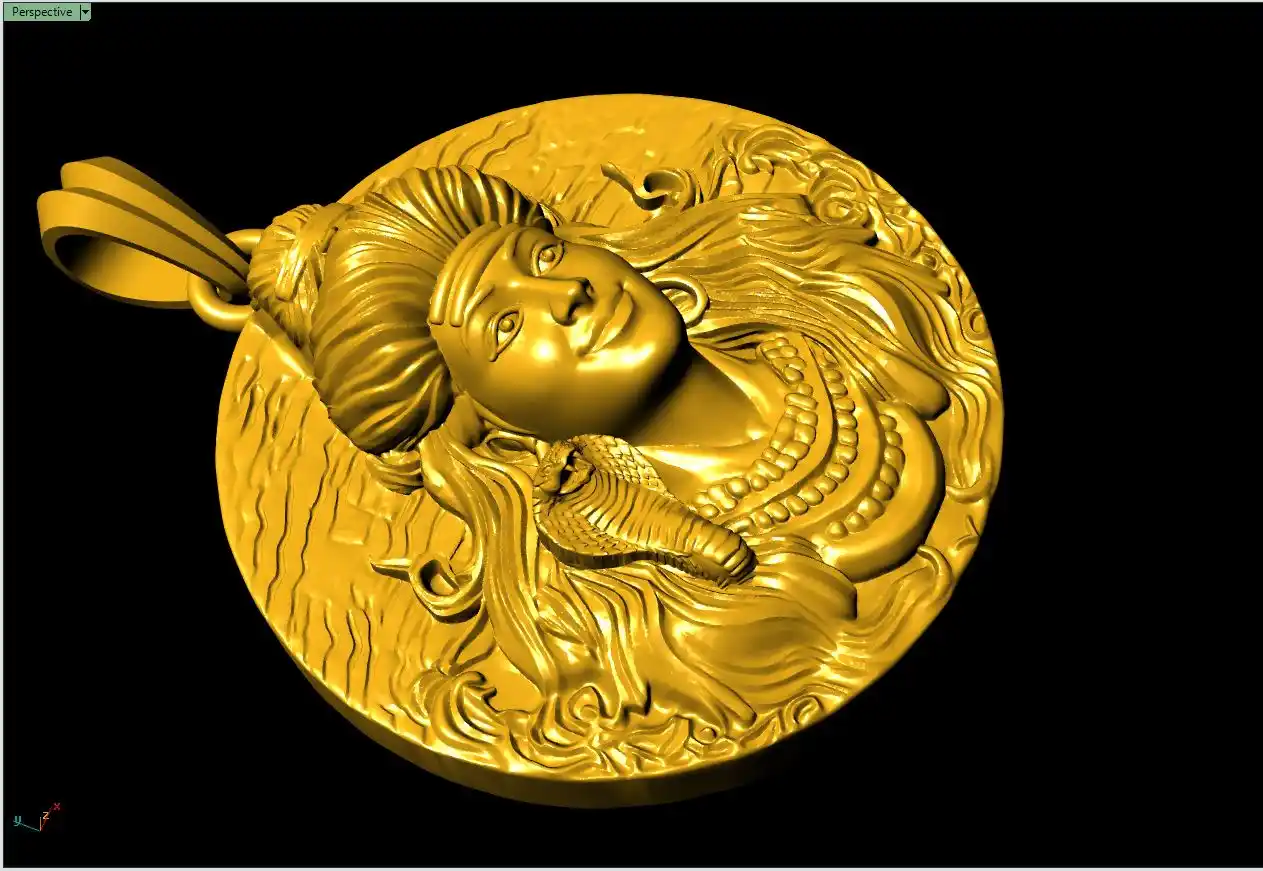 This is a jewelry CAD file, CAM file, 3Dprint file, STL file. For jewelry CAD, CAM, 3Dprint and metal casting purpose. You can also use this 3D file for other 3Dprinting purpose. Model name is :- " Shiva pendant CAD file-2 "