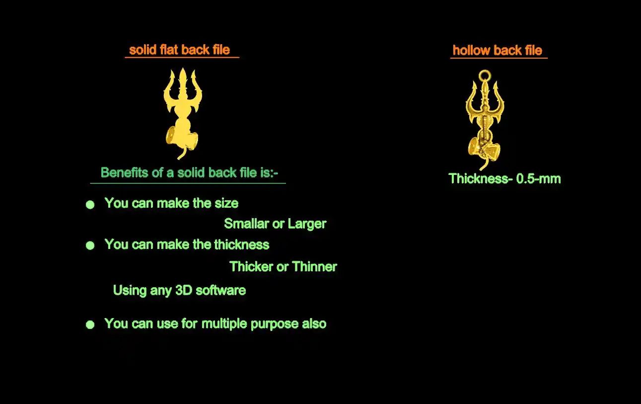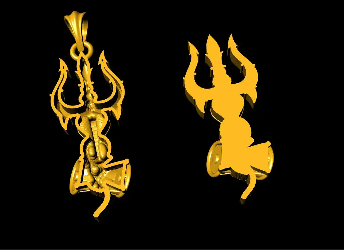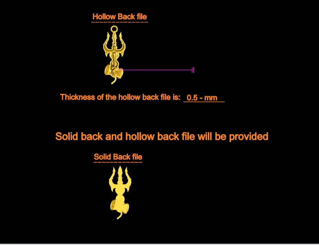 This ' Trishul pendant cad file-3 ' with a hollow back and solid back file is available.