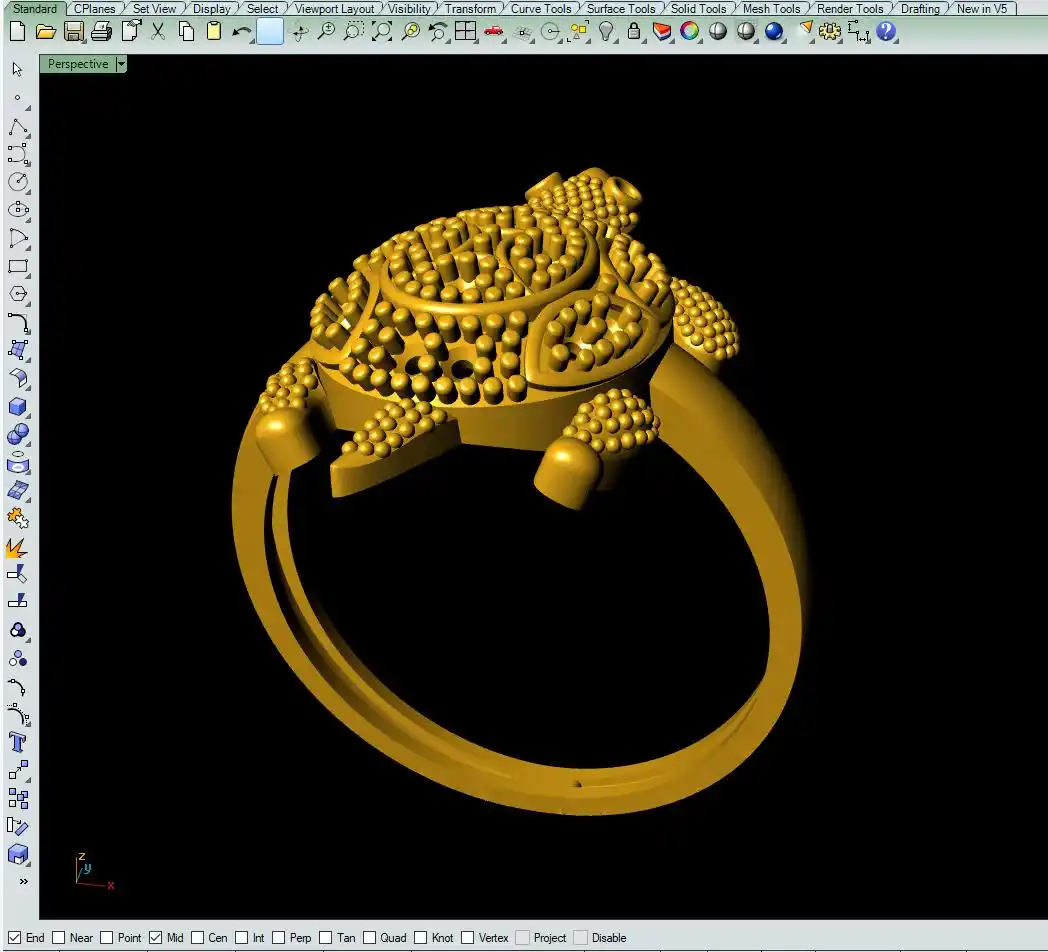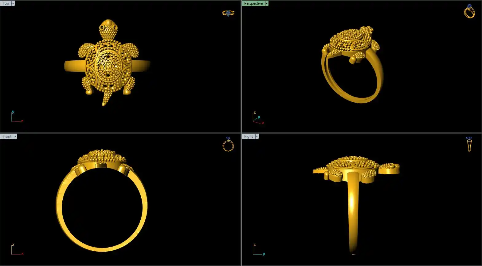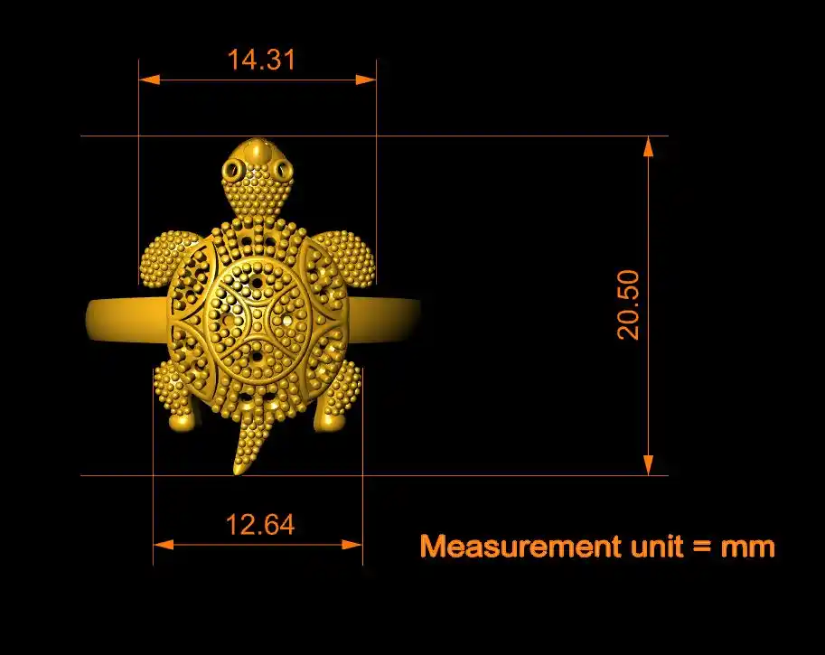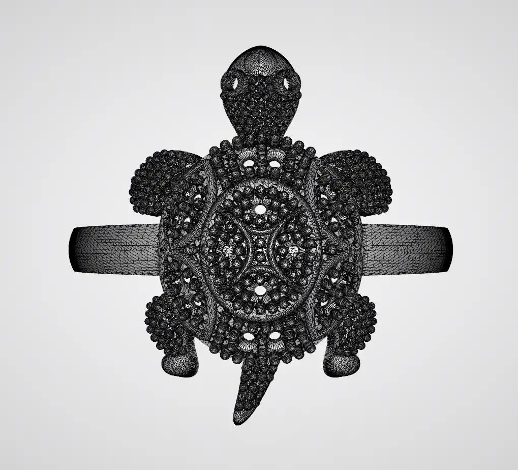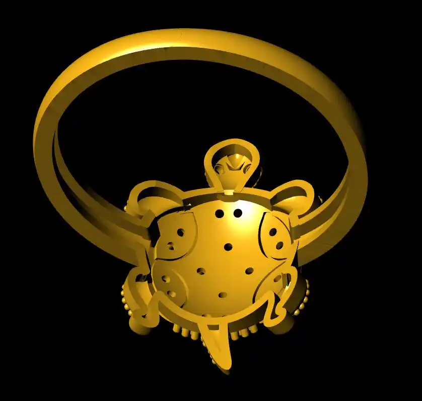 This is a jewelry CAM file, CAD file, stl file, 3D-printing file. For jewelry CAD, CAM, metal casting and 3D-printing purpose. Model name is :- ”Turtle Ring CAD file-1“. 3