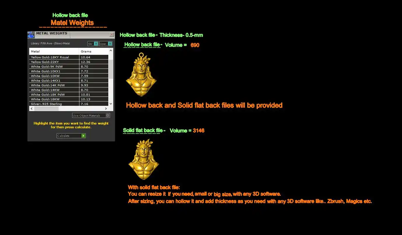 This ' Adiyogi pendant CAD file-1 ' with a hollow back and solid back file is available.
