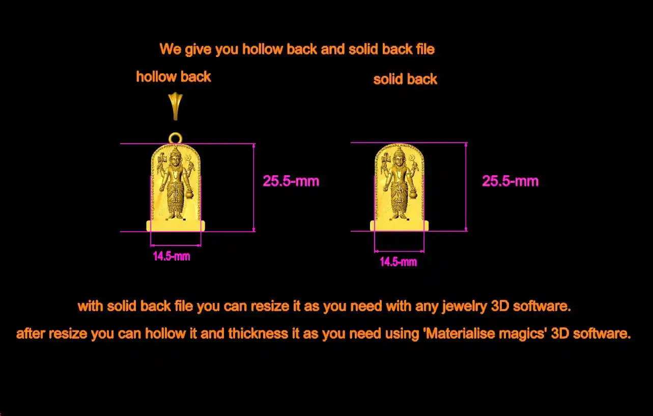 This is a jewelry CAM file, CAD file, stl file, 3D-printing file. For jewelry CAM and metal casting. Model name is :- ”Bhairavnath pendant cad file“. This file is for jewelry manufacturing company or other 3D printing ornaments manufacturing company. We can use this model as a Jewelry Pendant, Necklace center piece, Rings center piece, Earrings or other purpose. This Bhairavnath pendant cad file is ready for jewelry CAM and metal casting and any type of 3D-printing purpose. You can find all details of the product in product image. I give you (normal stl, magics fix stl, 3dmstl and obj) file format in zip file.
