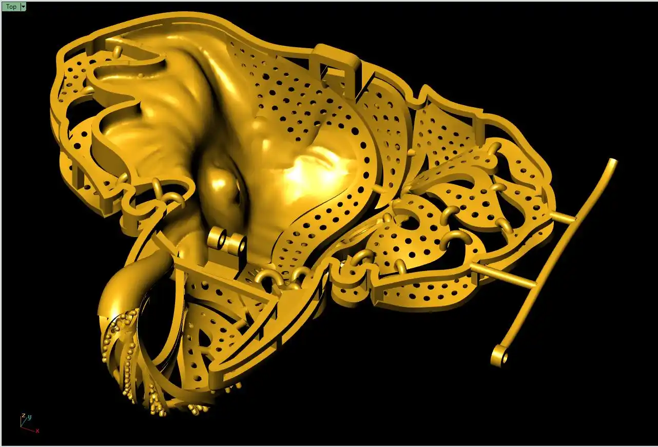 This is a jewelry CAM file, CAD file, stl file, 3D-printing file. For jewelry CAD, CAM and metal casting and 3D-printing purpose. Model name is :- ”Elephant Brooch CAD file“.