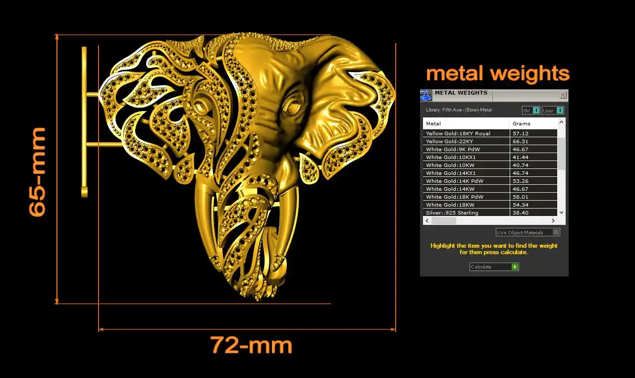 This is a jewelry CAM file, CAD file, stl file, 3D-printing file. For jewelry CAM and metal casting purpose. Model name is :- ” Elephant Brooch CAD file “. This file is for jewelry manufacturing company or other 3D printing ornaments manufacturing company. We can use this model as a Jewelry Brooch, Pendant, Necklace center piece, Rings center piece, Earrings or other purpose. This Elephant Brooch CAD file is ready for jewelry CAM and metal casting and any type of 3D-printing purpose. You can find all details of the product in product image. We give you (normal stl, 3dmstl, magics fix stl and obj) file format in zip file.