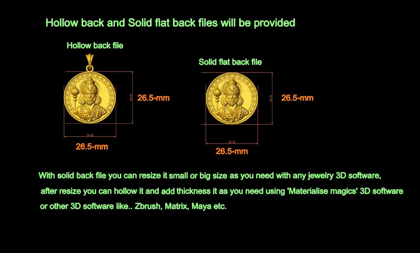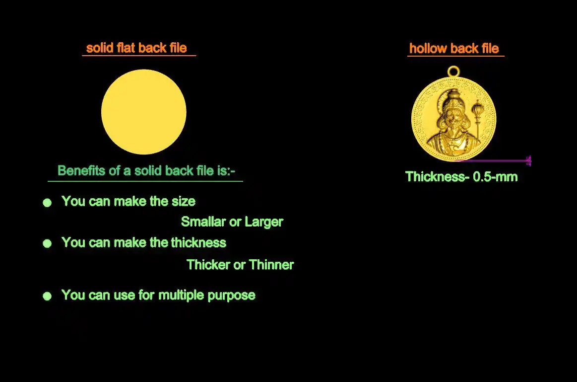 Solid flat back file benefits: You can use this for multiple purpose and you can resize it small or big and hollow it and add thickness according to your requirement, using any jewelry 3D software, like.. Rhino, Matrix, Magics, Zbrush etc.