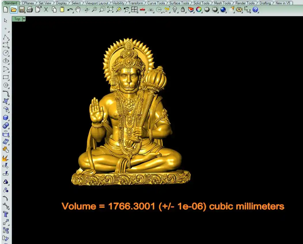 This is a jewelry CAD file, 3Dprint file, CAM file, stl file. For jewelry CAD, CAM, 3Dprint and metal casting purpose. You can also use this 3D file for other 3Dprinting purpose. Model name is :- "Hanumanji 3d cad file-2".