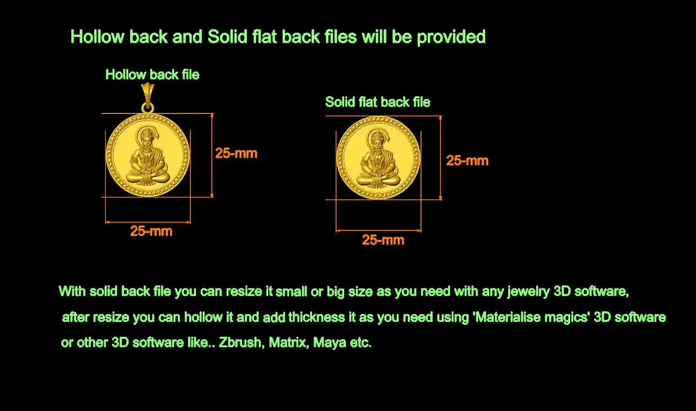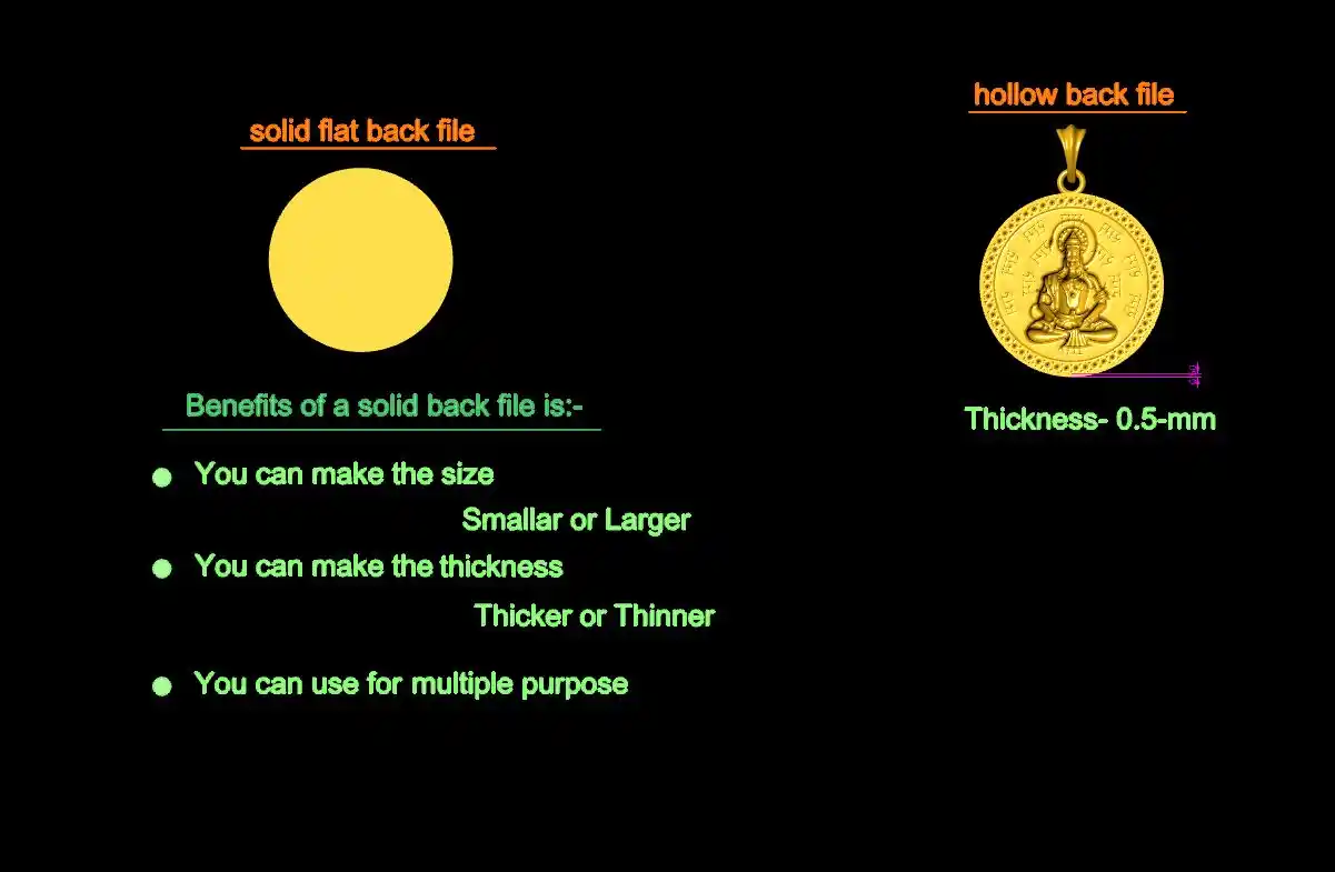 Solid flat back file benefits: You can use this for multiple purpose and you can resize it small or big and hollow it and add thickness according to your requirement, using any jewelry 3D software, like.. Rhino, Matrix, Magics, Zbrush etc.