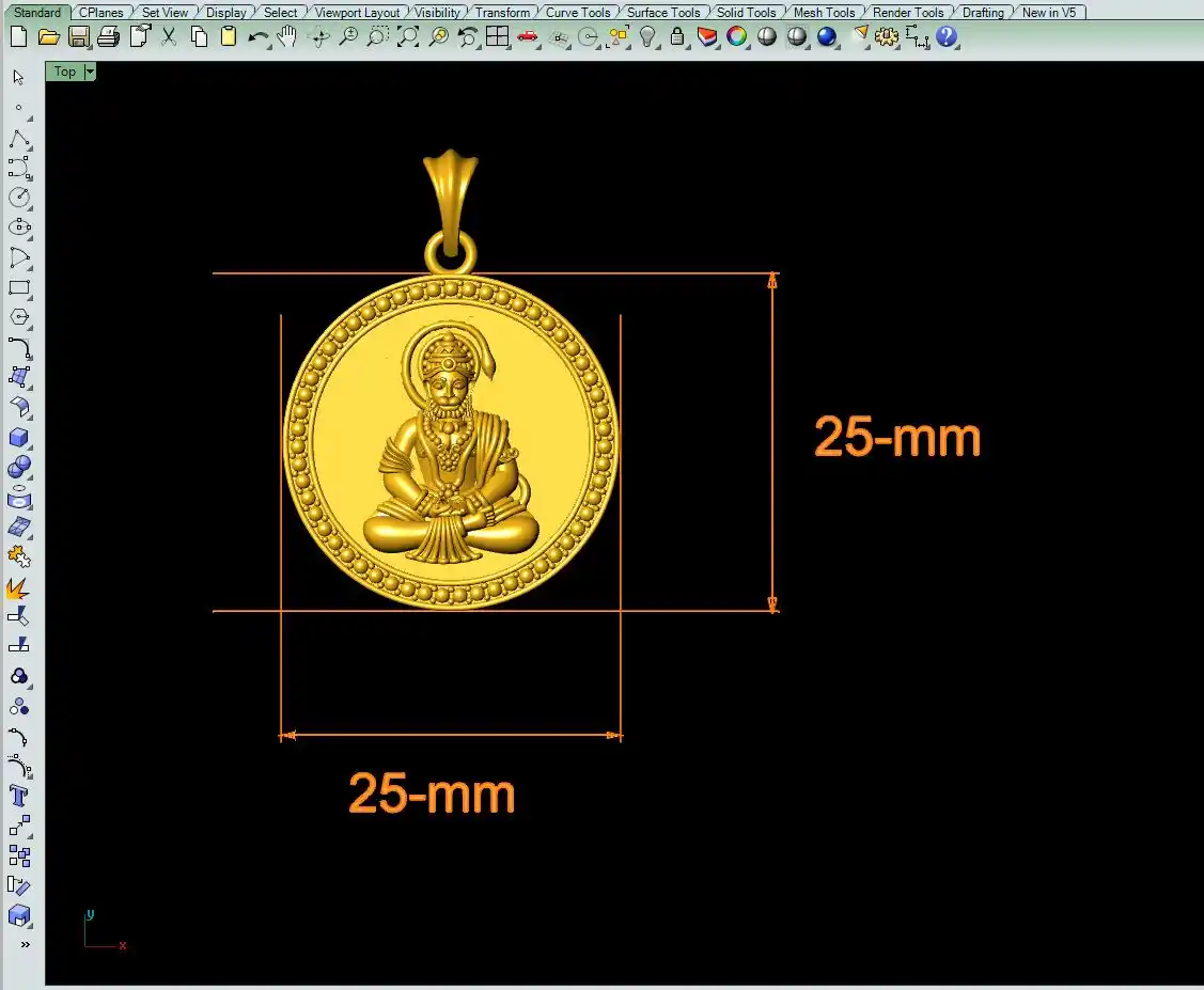 This is a jewelry CAD file, CAM file, 3Dprint file, STL file. For jewelry CAD, CAM, 3Dprint and metal casting purpose. You can also use this 3D file for other 3Dprinting purpose. Model name is :- " Hanumanji Pendant 3Dprint file-6 "
