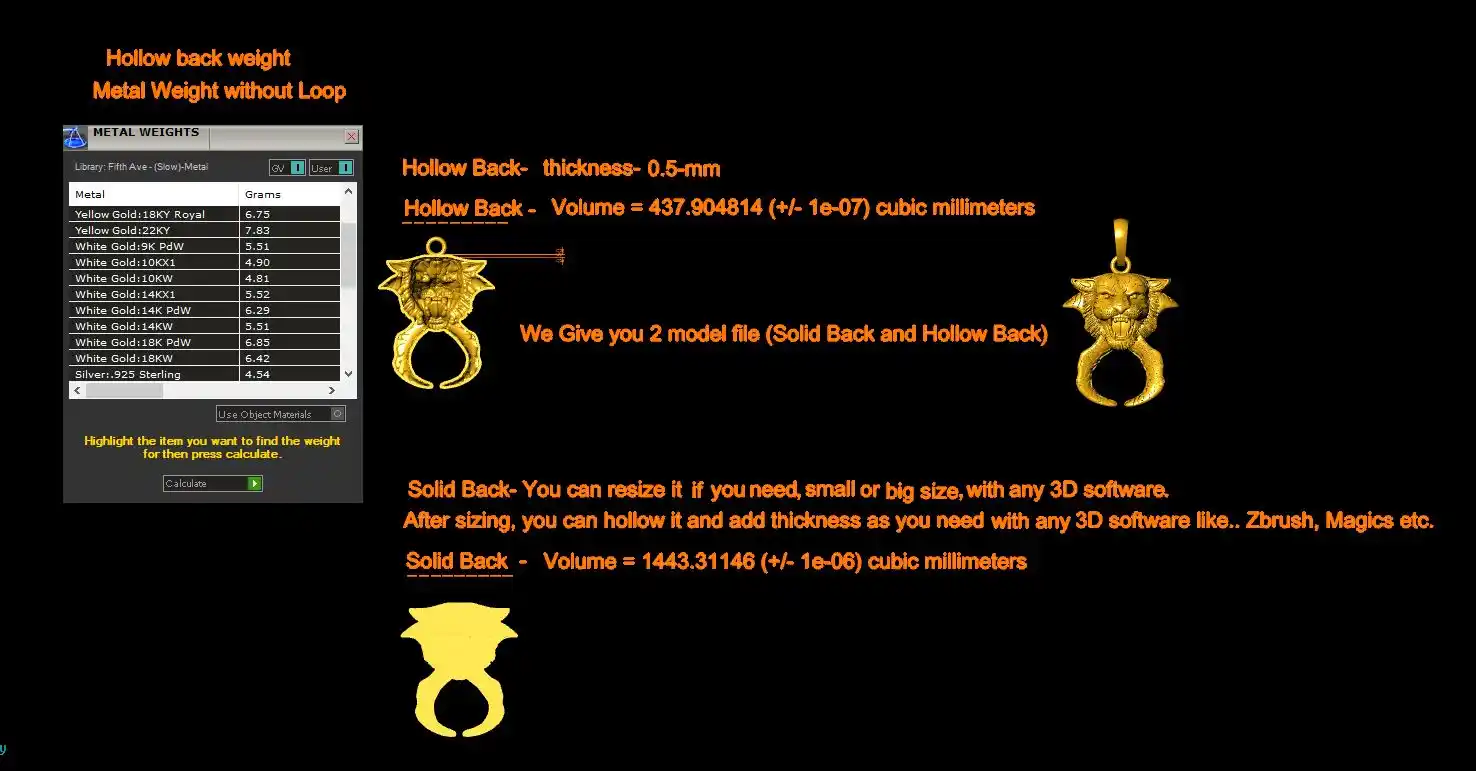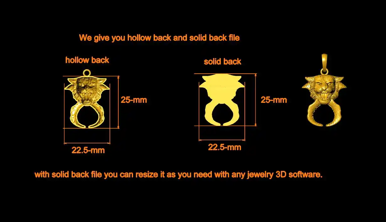 This is a jewelry CAM file, CAD file, stl file, 3D-printing file. For jewelry CAD, CAM and metal casting purpose. Model name is :- ” Lion Art Pendant File “. This file is for jewelry manufacturing company or other 3D printing ornaments manufacturing company. We can use this Lion Pendant File model as a jewelry pendant, earrings, rings center piece, necklace center piece, show piece, statue or other purpose.. You can find all details of the product in product image. We give you (normal stl, magics fix stl, 3dmstl and obj) file format in zip file.