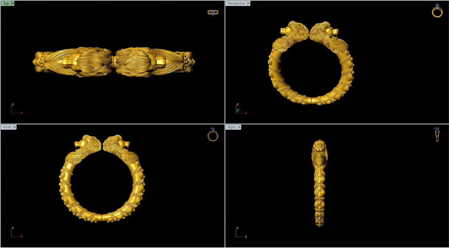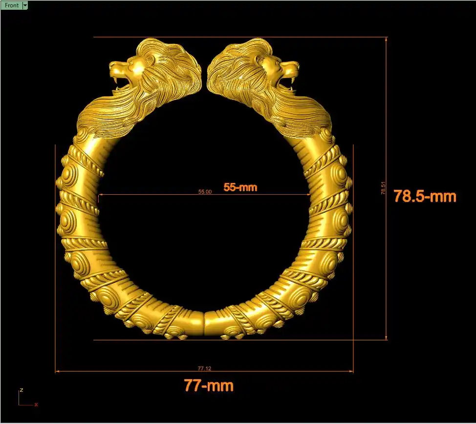 This is a jewelry CAM file, CAD file, stl file, 3D-printing file. For jewelry CAM and metal casting and 3D-printing purpose. Model name is :- ”Lion face bangle file-4“.