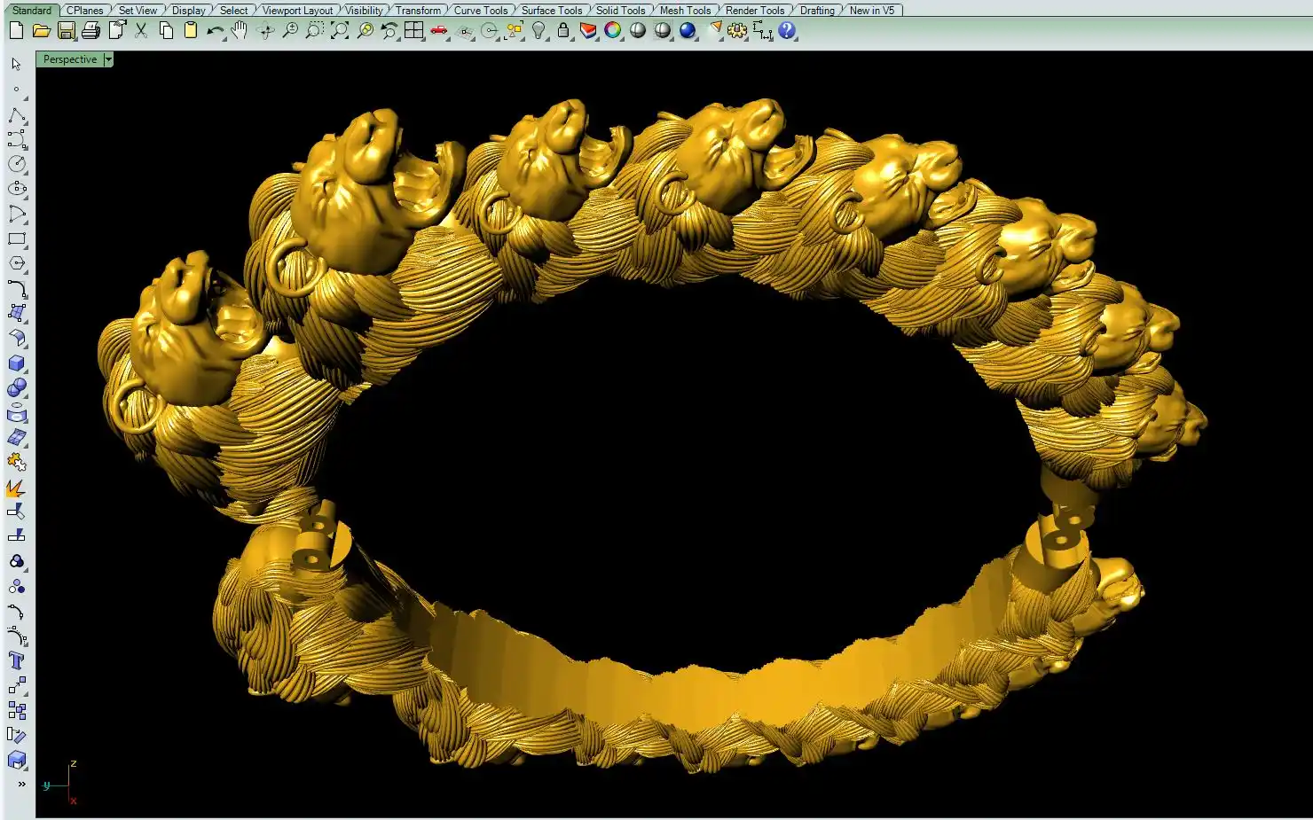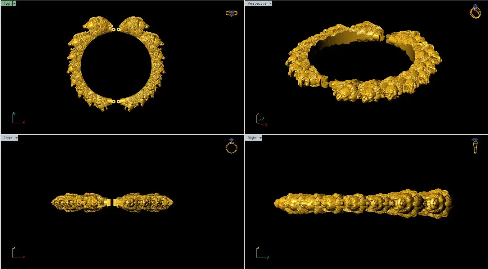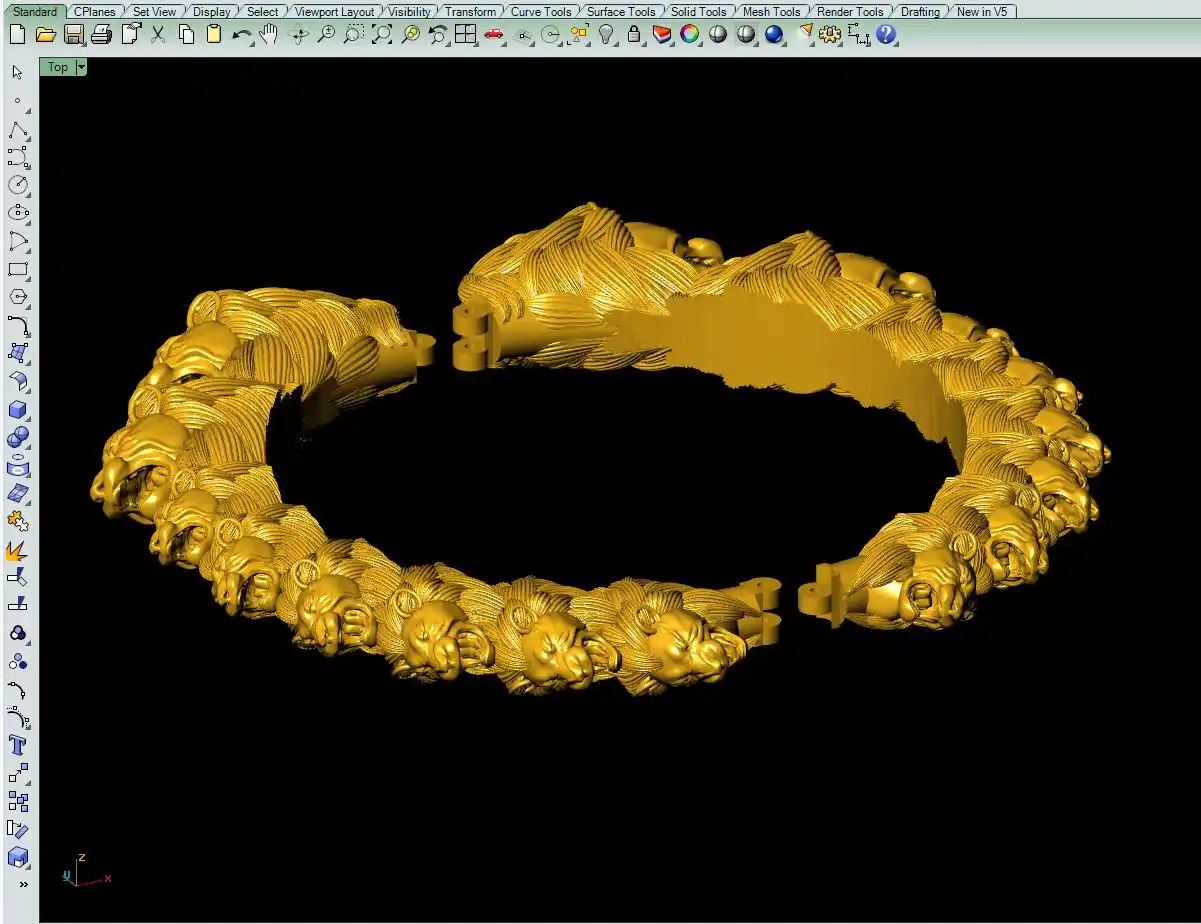 This is a jewelry CAM file, CAD file, stl file, 3D-printing file. For jewelry CAM and metal casting and 3D-printing purpose. Model name is :- ”Lion face bangle file-5“.