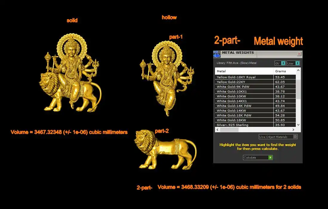 This is a jewelry CAM file, CAD file, stl file, 3D-printing file. For jewelry CAD, CAM, Metal casting and 3D-printing purpose. Model name is :- ”Sherawali mata stl file-2
