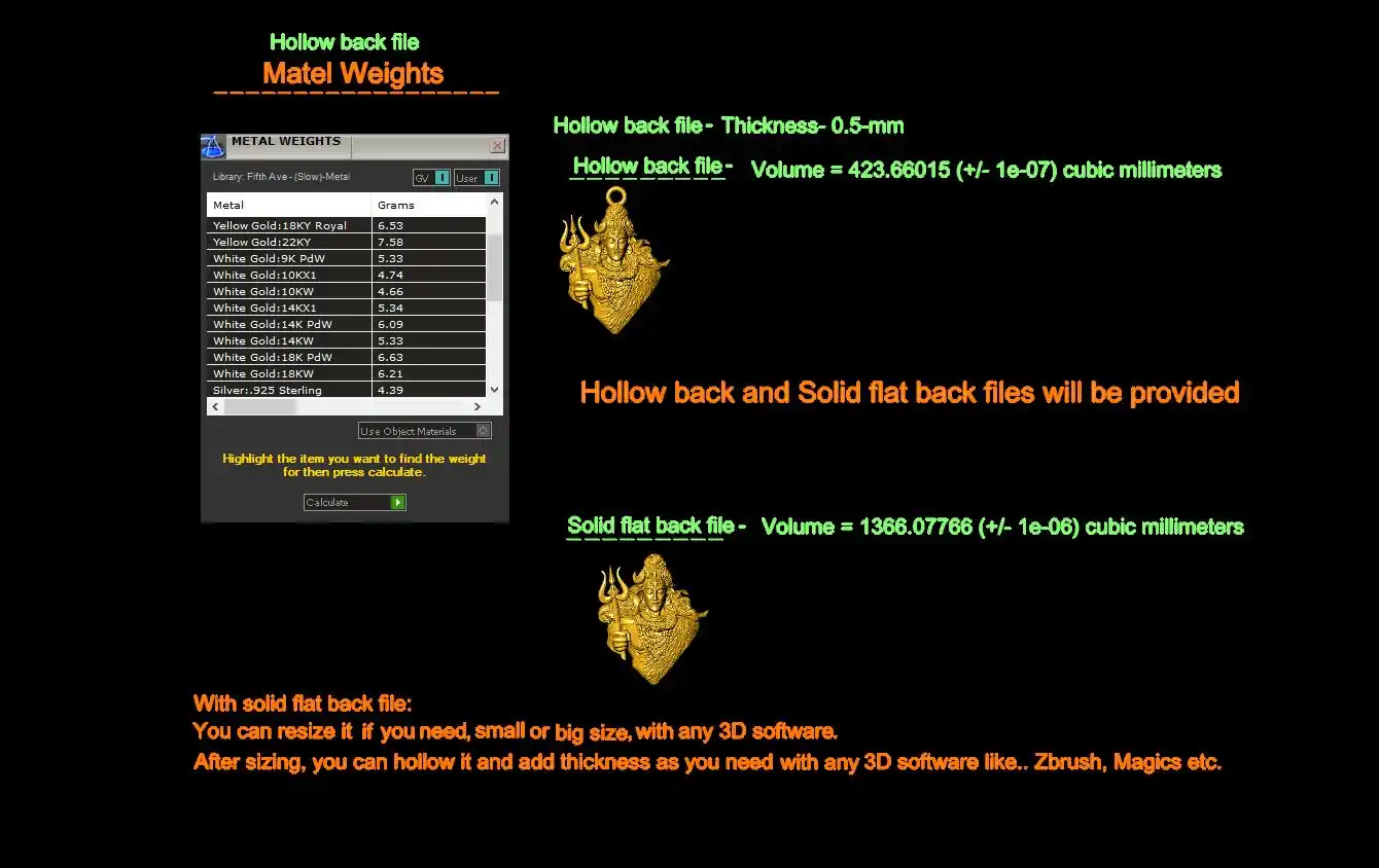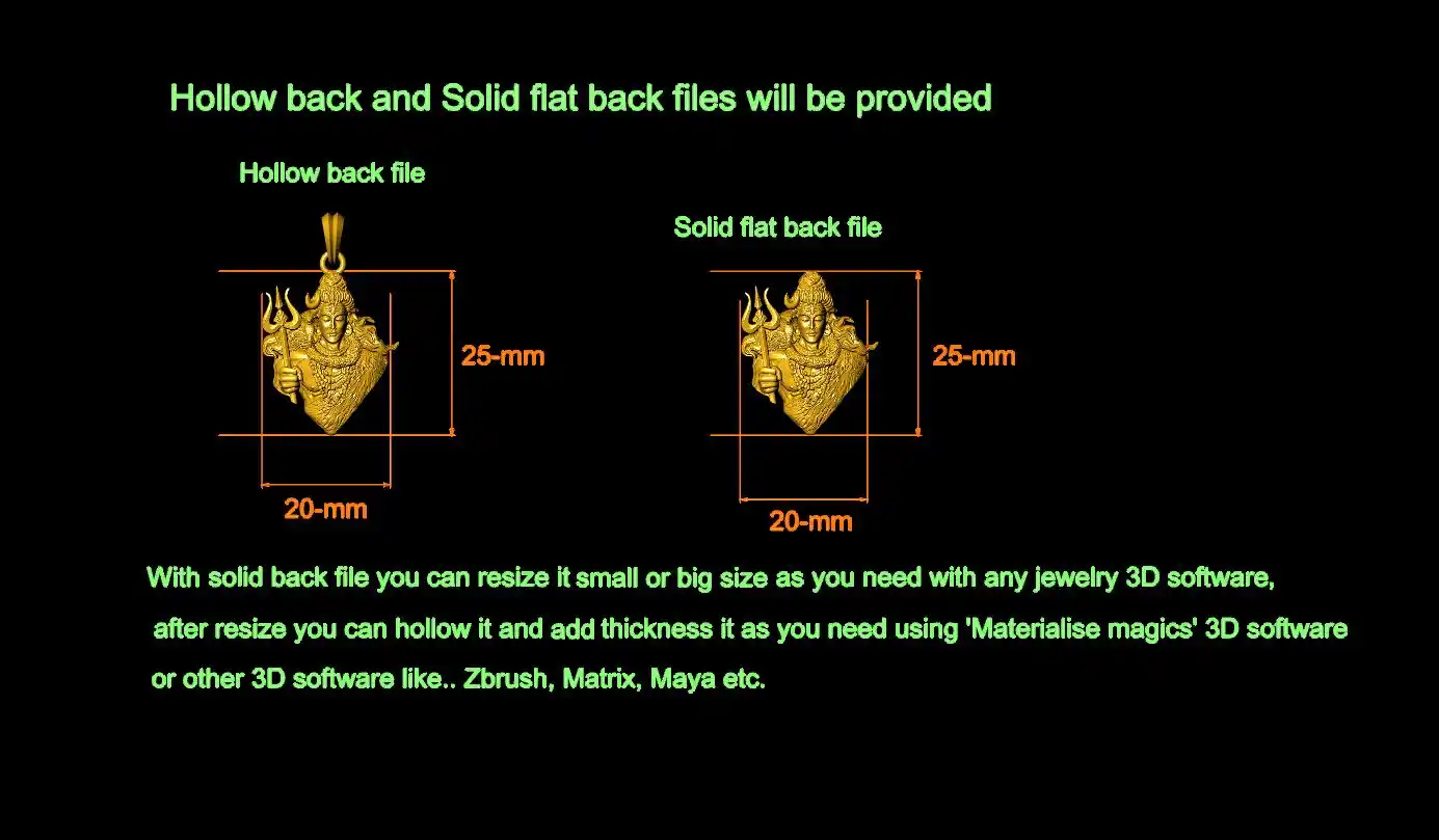 This ' Shiva pendant CAD file-1 ' with a hollow back and solid back file is available.