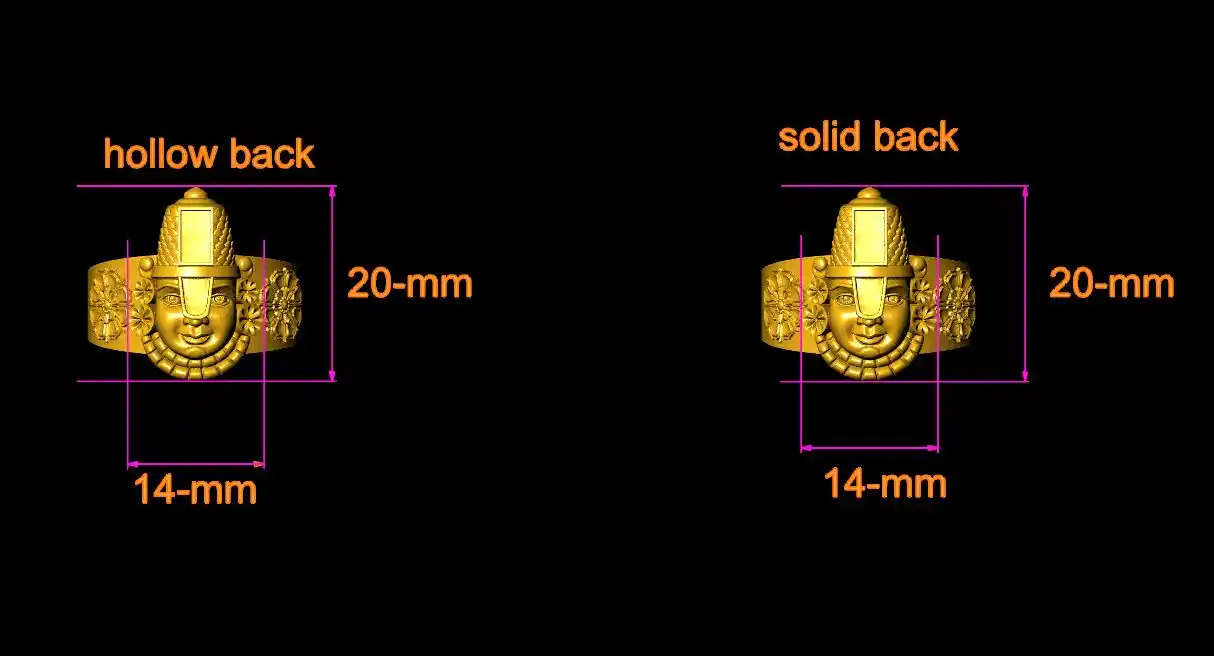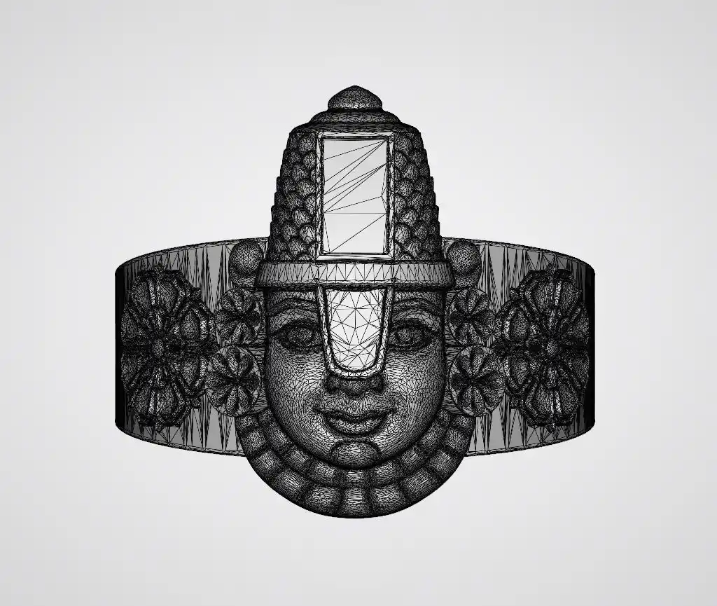 This is a jewelry CAD file, CAM file, 3Dprint file, stl file. For jewelry CAD, CAM, 3Dprint and metal casting purpose. You can also use this 3D file for other 3Dprinting purpose. Model name is :- "Tirupati Balaji ring file-2"