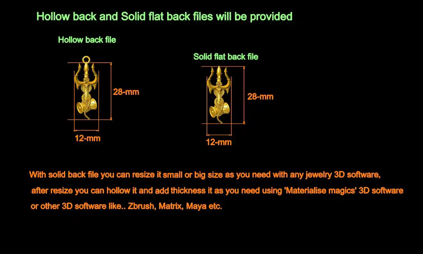 Solid flat back file benefits: You can use this for multiple purpose and you can resize it small or big and hollow it and add thickness according to your requirement, using any jewelry 3D software, like.. Rhino, Matrix, Magics, Zbrush etc.