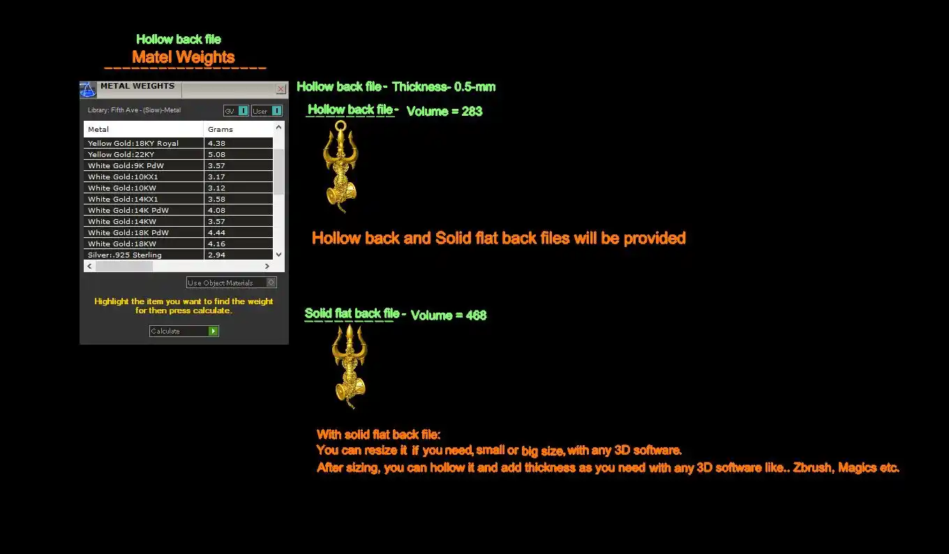 This ' Trishul pendant cad file-3 ' with a hollow back and solid back file is available.